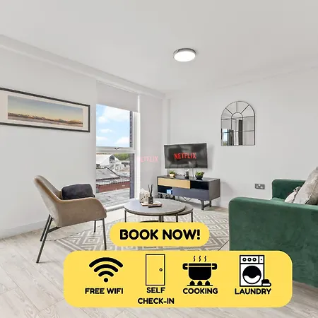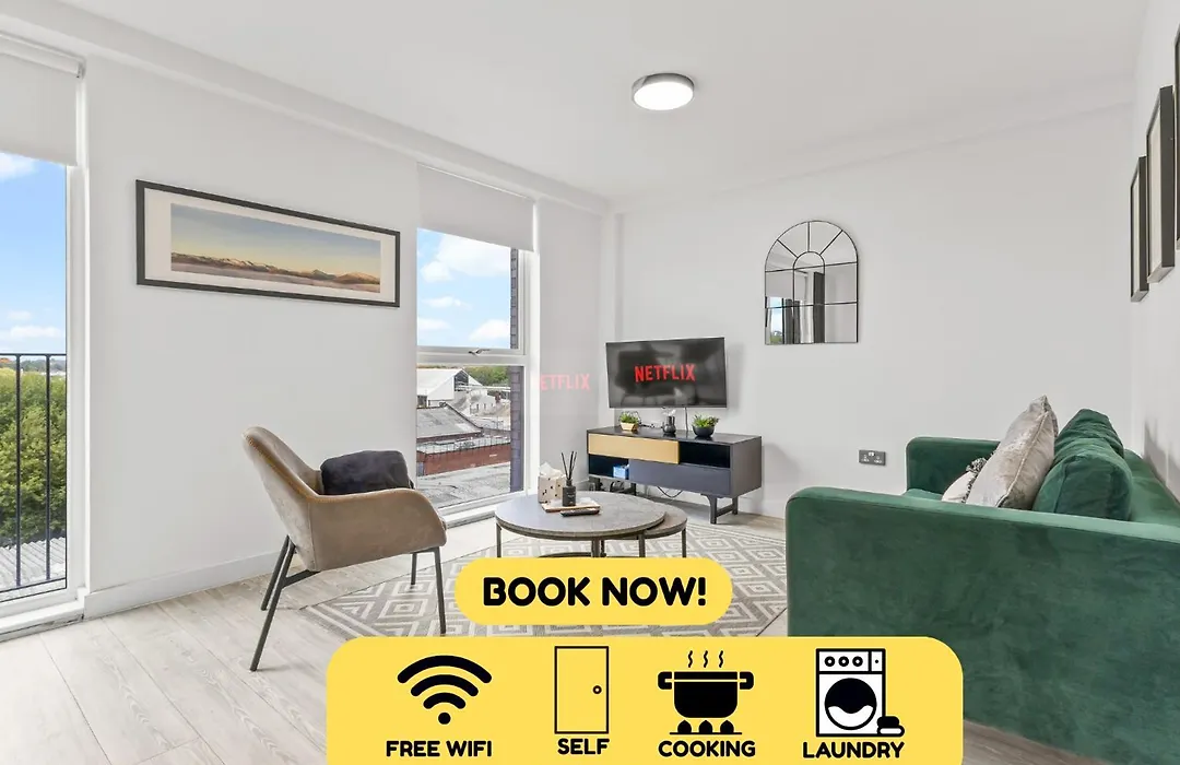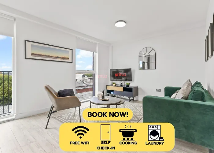 Modern 2Br Urban Nest In Salford, Manchester For 4, un apartamento de 74 m², es un lugar estupendo para alojarse en el barrio Salford, a tan solo 1 km del Museo de Ciencia e Industria. Este apartamento también ofrece bicicletas de alquiler.